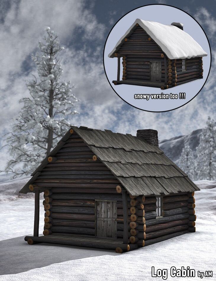 But this is not all: the second cabin version provides a puffy snow cover on both roof and chimney, perfect for your winter renders!