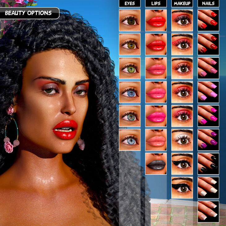 Classy latina character for Genesis 8 Female. + 8 expressions + wet skin geoshells + scorpion tattoo!