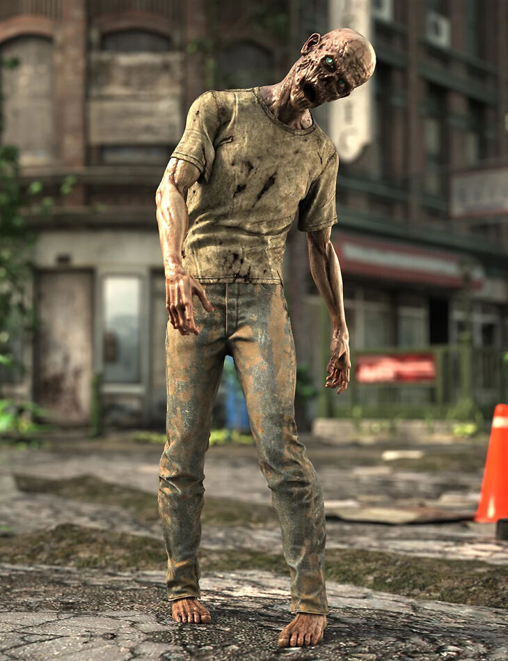 A complete zombie character for your horror, post-apocalyptic, or dark fantasy scenes. This asset includes a full-body HD morph and an optional HD morph to remove the nose, offering a more grotesque variation when needed.