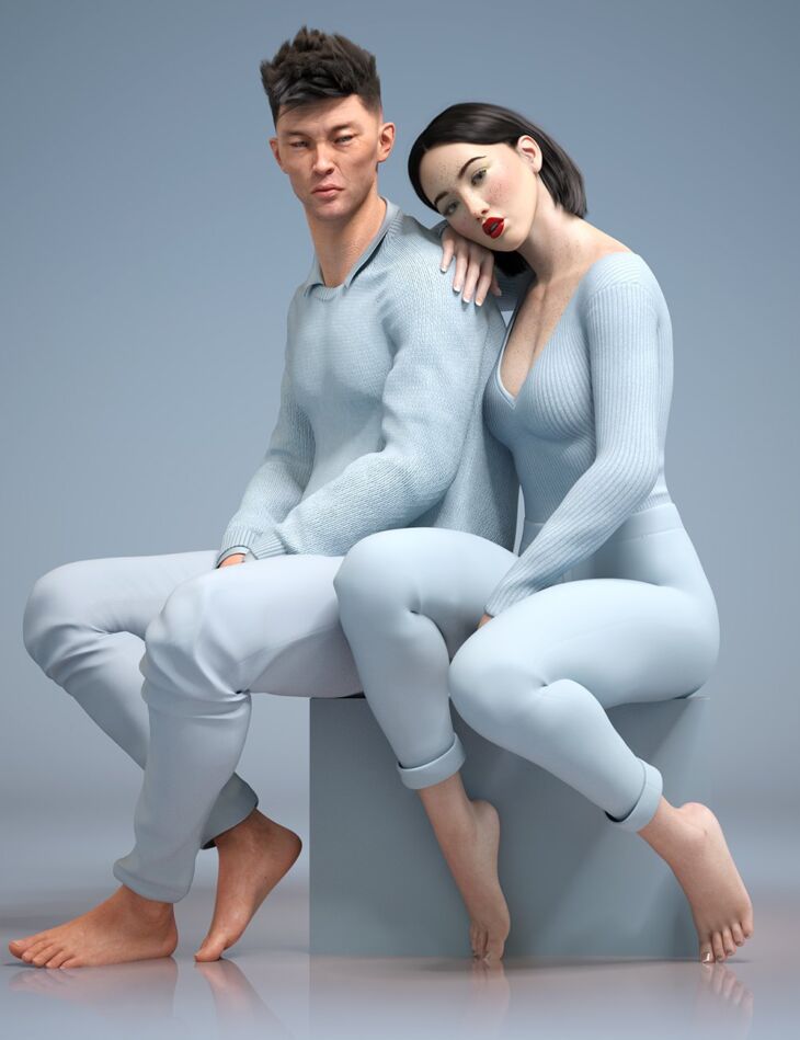 Being on a photoshoot never was so effortless. With the Lookbook for two, you'll get 15 interacting poses for both Genesis 8.1 Female and Genesis 8.1 Male, and matching expressions for each and every pose. Crafted in detail for you the editorial characters of your choice.