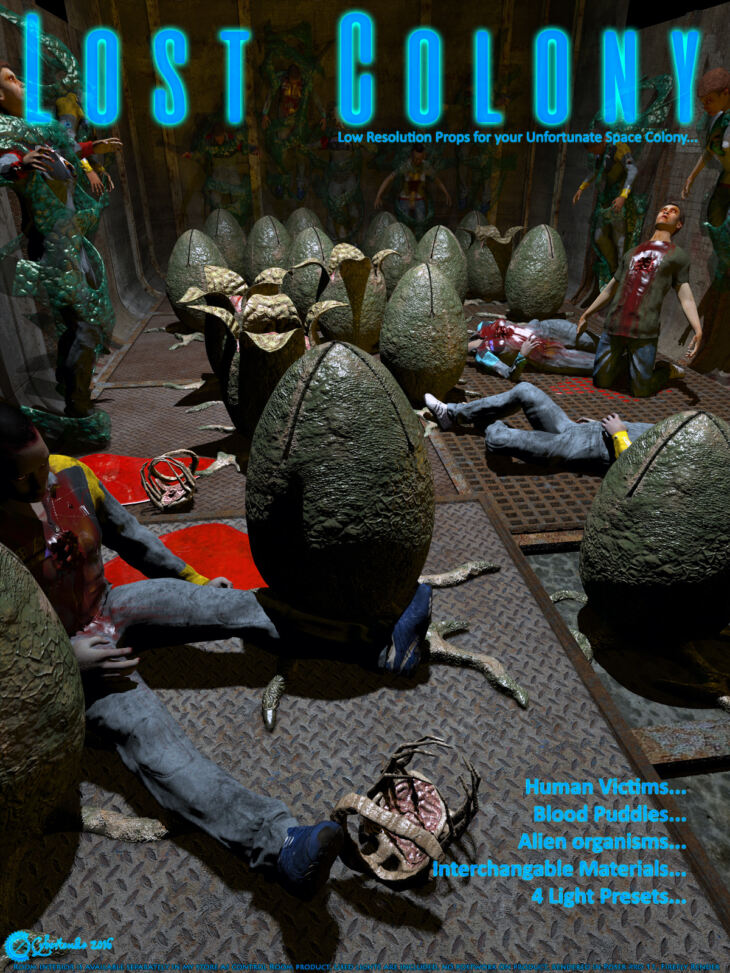 Collection of low resolution props for making your own unfortunate space colony which has been overrun by hostile alien forces... But wait... the personnel are not just slaughtered by them. The staff members become hosts to breed new alien generation...