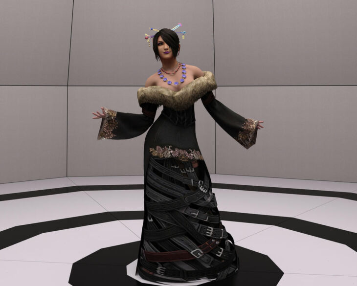This model has Dforce on the sleeves, but not on the skirt, due to all the belts being separate objects.
