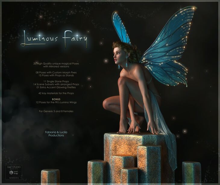 LUMINOUS FAIRY - High quality poses by Lucila and Fabiana for Genesis 3 and Genesis 8 Females.