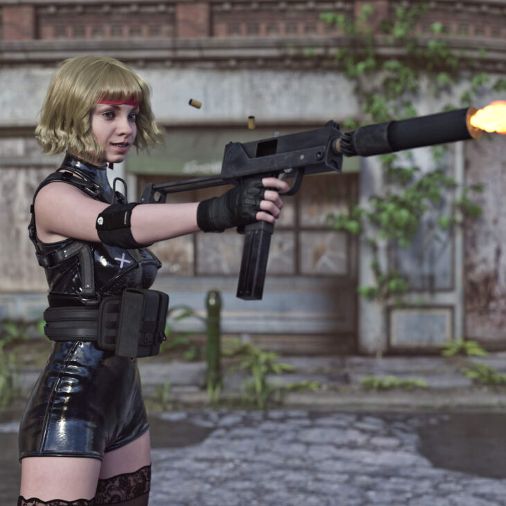 One of the most popular SMGs in the world, rigged and converted for use with DAZ. Trigger, safety, bolt, stock etc also rigged for more realistic pictures.