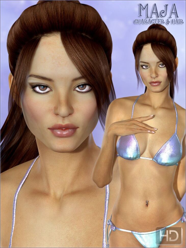 Who can resist those eyes? Maja is a high quality photorealistic character set for Victoria 6 that comes with her very own signature hairstyle. Maja's face and body were sculpted as HD morphs to add fine detail to her features.