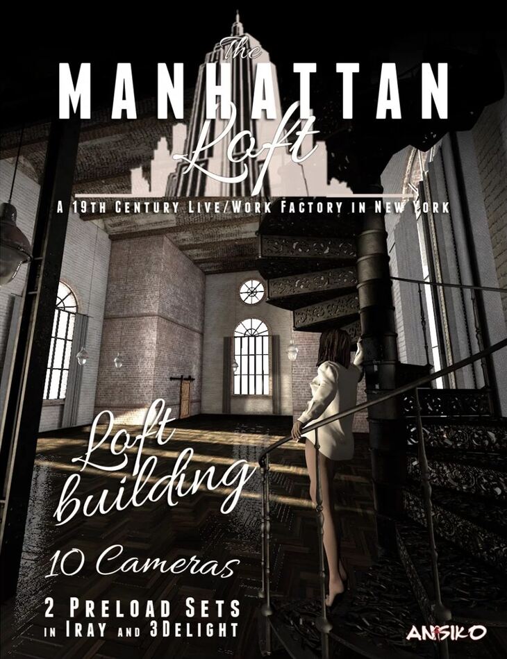 - Manhattan Loft - When you look at this beautiful brick building, you have difficulty in believing that it was once used as an old railroad depot. This spacious loft has a nice large house feel in a prime location. Architectural details abound with the black metal structural features, the industrial style lighting, parquet oak herringbone, rustic and contemporary furniture, mezzanine with Victorian spiral staircase! 2 preloads sets in Iray and 3Delight.