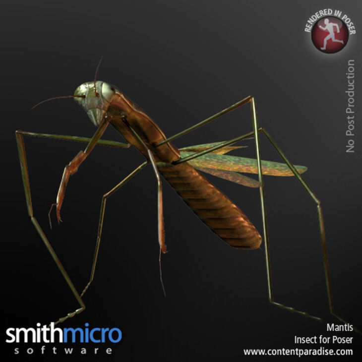 High resolution, detailed and accurate, fully rigged and textured Mantis for Poser.
