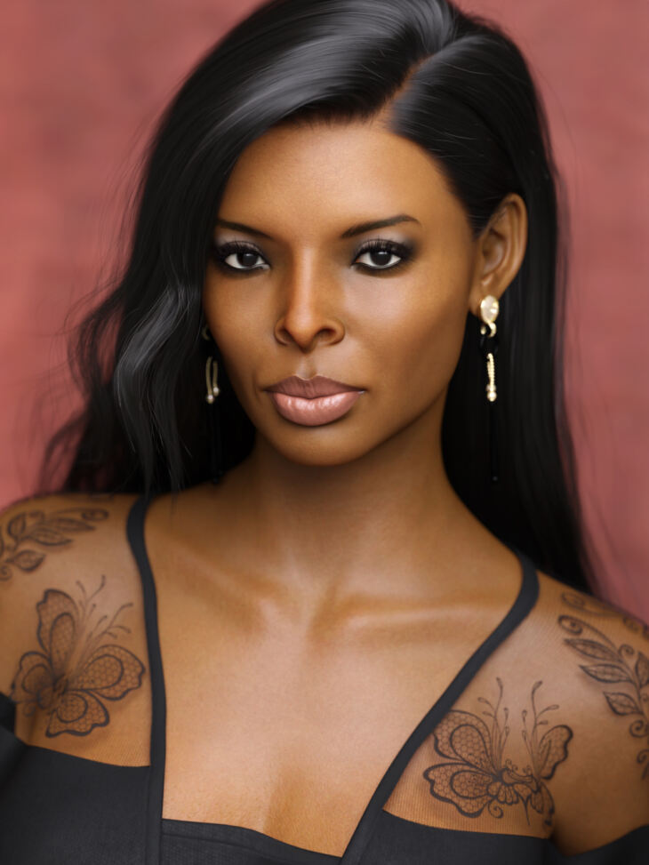 Created with a custom sculpted head and body morphs. No morph packs are required.