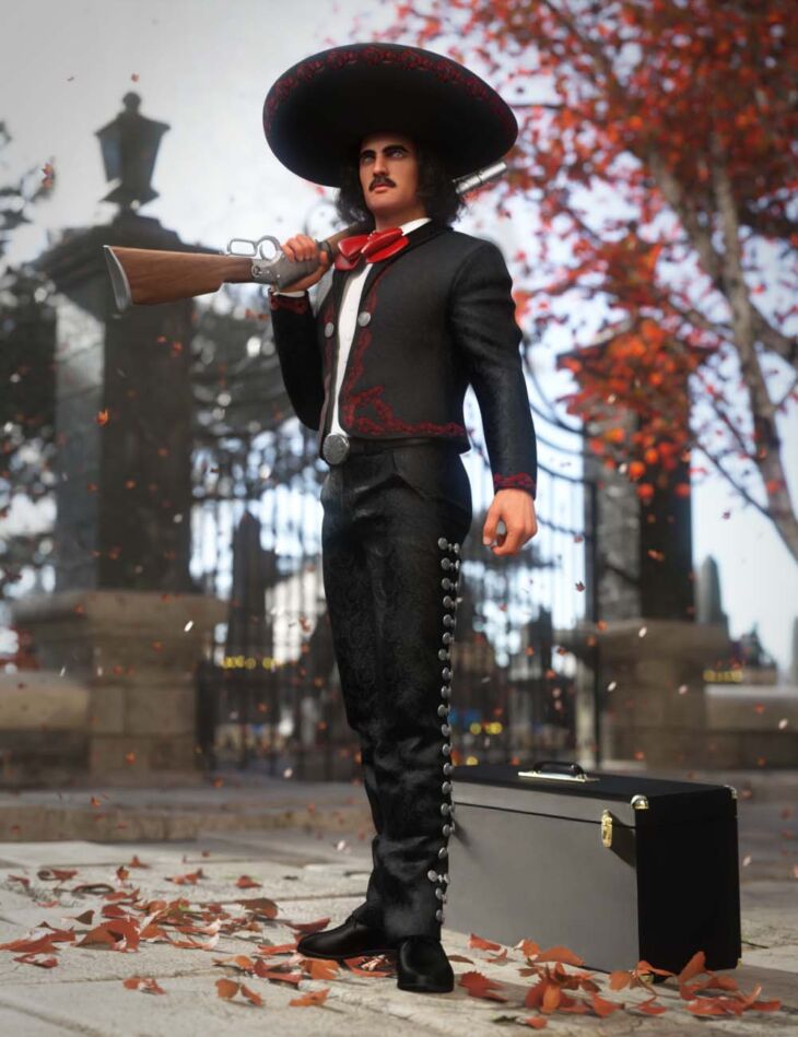 Outfit your mariachi band in charro style with the Mariachi Outfit for Genesis 8 and 8.1 Males!