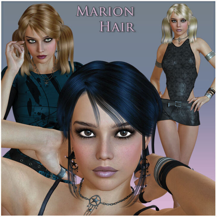 Marion Hair is a piggy-tails style hair for Victoria 4 and Aiko 4. With options for longer/shorter tails, wind, behind shoulders, fowards, ponytail single, wavy, bang styles options and 22 morphs total with A4 fit.