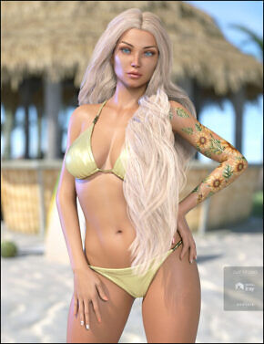 She features unique skin textures, head and body morphs, anatomical elements, and a full range of eye colors, makeup, and nail options.