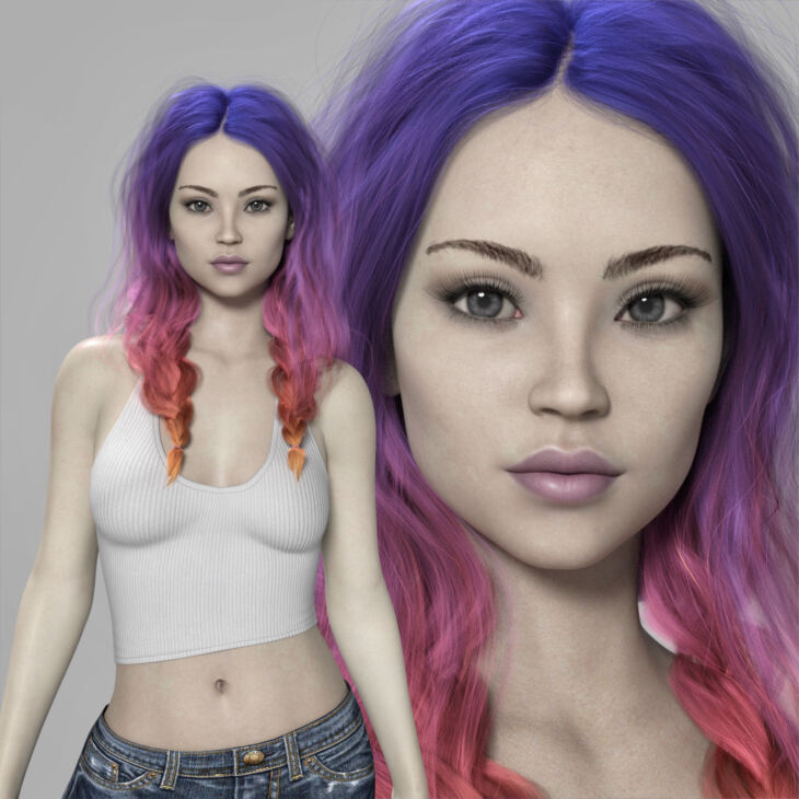 MbM Nyssa is a high quality custom character for Genesis 8 Female. She features custom skin textures, head and body morphs, anatomical elements, fibermesh eyebrows, and a full range of eye colors, makeup, and nail options.