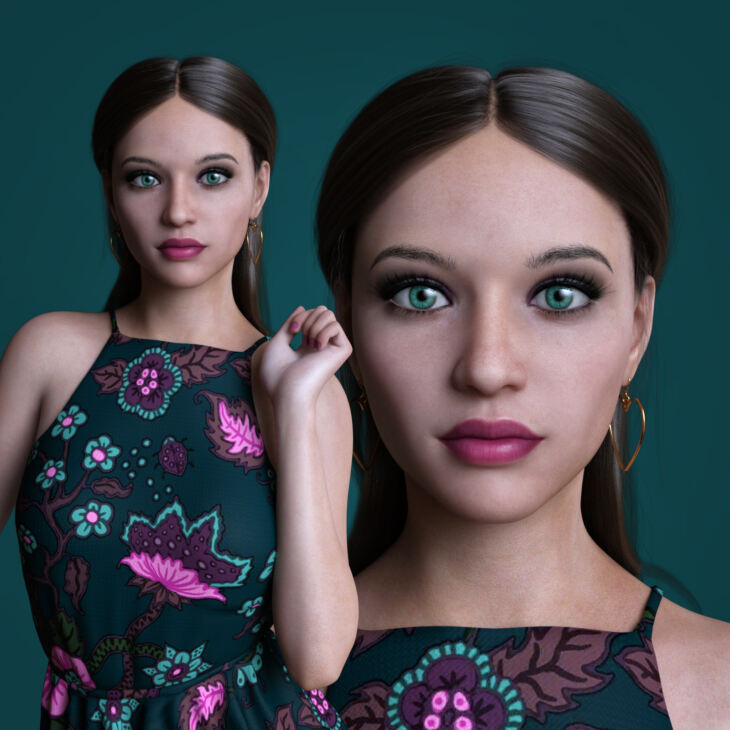 MbM Sawyer is a beautiful custom character for Genesis 3 and 8 Female. She features unique skin textures, head and body morphs, anatomical elements, and a full range of eye colors, makeup, and nail options.