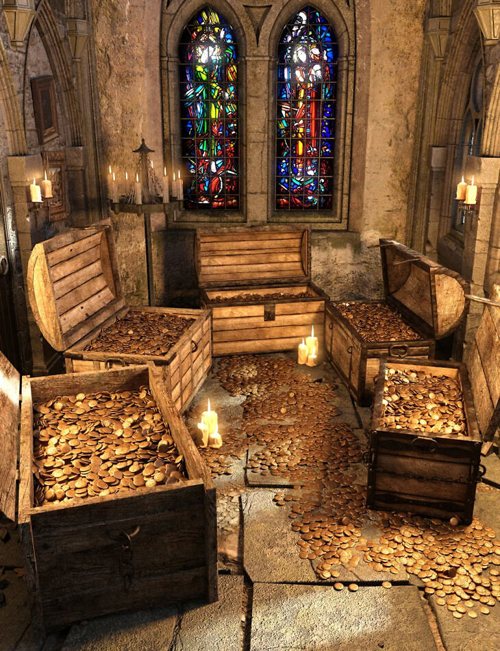Medieval Chests 1 is a collection of 5 old, wooden containers, filled with gold, just waiting for a passing adventurer to stumble upon them.