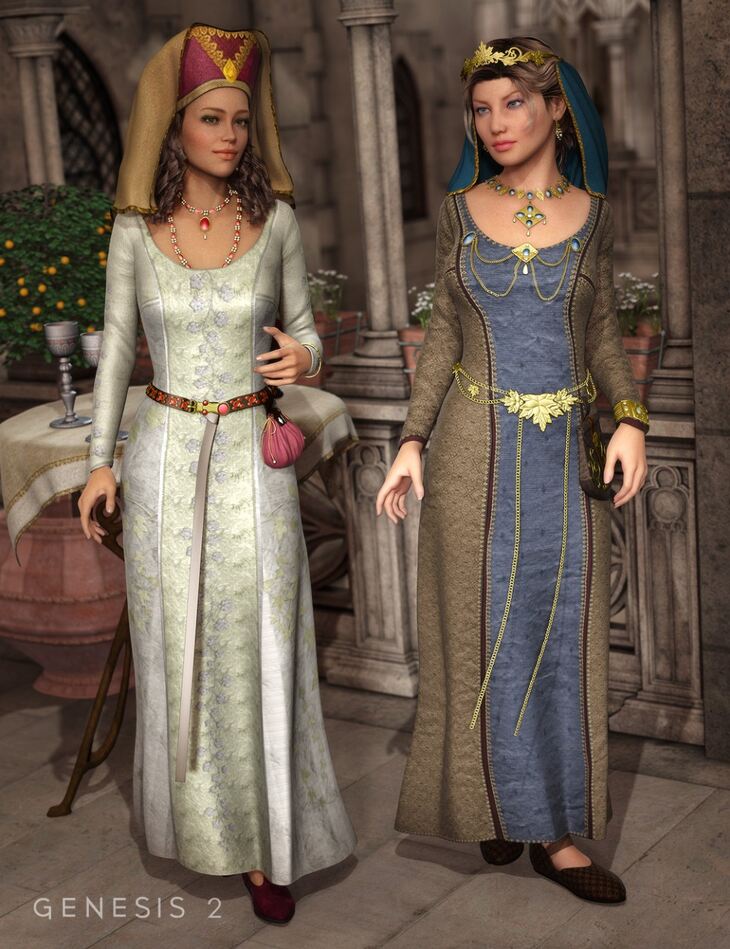 With everything from tiaras to shoes and boots, this set of 3D accessories for the Genesis 2 Female will help fill out a fantasy wardrobe. The set includes shoes, boots, bracelets, necklaces, earrings, tiaras, belts, purses, broach, headpiece and veil.