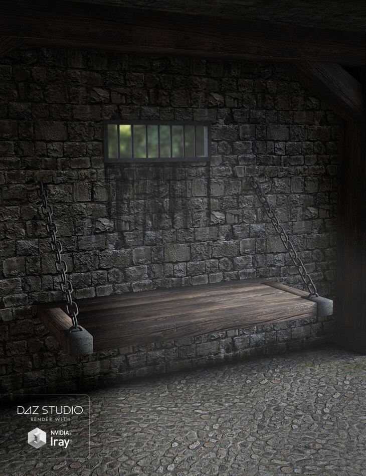 Medieval Prison room is an interior scene textured with gritty/grungy detail. Includes a pose-able door, and bucket with dirty water. (water can be selected and hidden) All walls, ceiling, floor, wooden bed can also be selected and hidden.