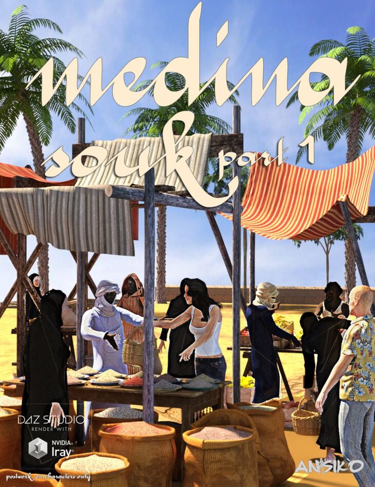 The Souk is an open-air marketplace with stalls with colored canopies in Medina.