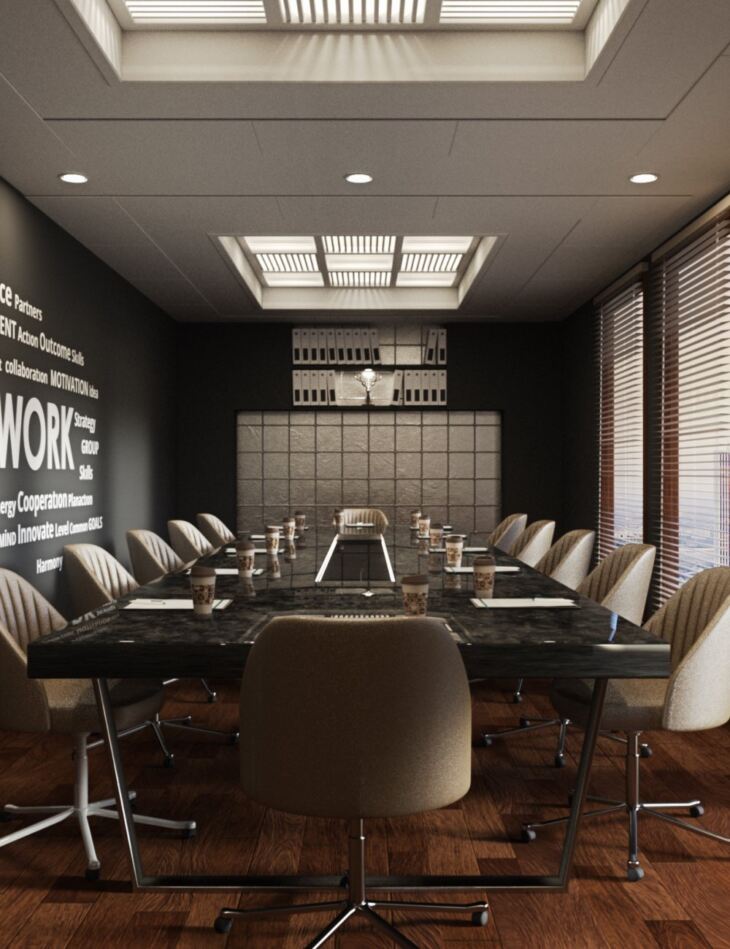 Meeting Room is a contemporary, modern product for your artwork, advertisements and/or games. The product has two different style options. In addition it is designed as user friendly and interactive as possible. You can move and invisible/visible objects as you want. Through smart grouping you are able to modify your meeting room quickly.