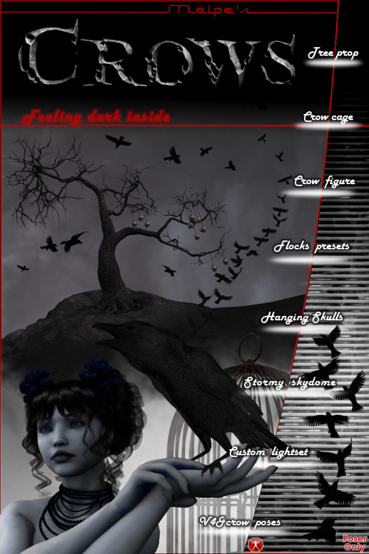 Meipe's Crow is a wild dark-themed package, created by the sculptor of Perfect V4. Add somber companions to your scene in no time!
