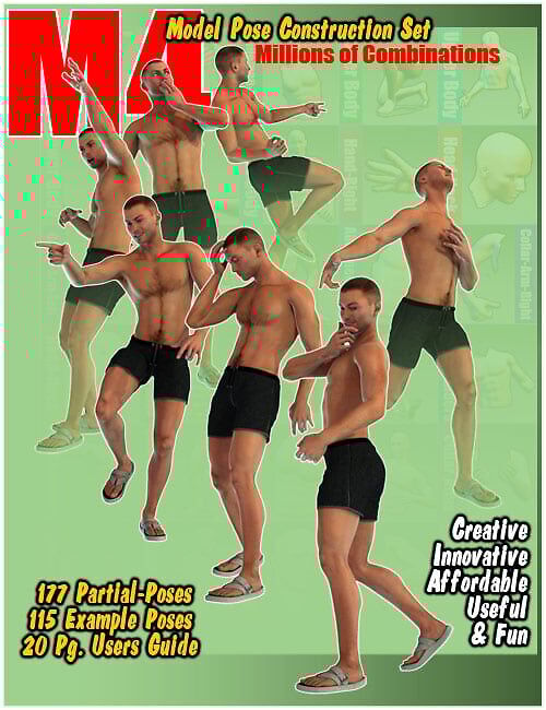 The partial poses that make up this set allow you to create an ongoing supply of useful model poses that can be used across any number of genres. All with the simple click of a mouse.
