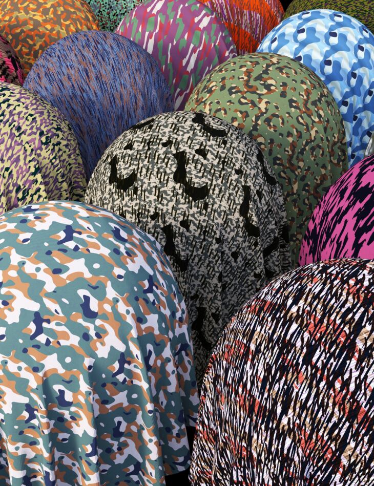 Military Camo Fabric Iray Shaders is a set of 30 high-detail shaders, ideal for all your military clothing, active and sportswear, and accessories like backpacks or even tents. These are high-quality, 4K textures that are unique to this set.