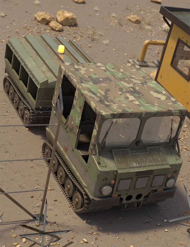 The Military Enigma is a military vehicle with a trailer. It's fully rigged with emissives.