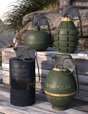 The Military Props Collection set comes with a variety of props for military, action, or survival scenes. Included is a rifle complete with a tactical light, 2 fixed blade knives, and several grenade styles. Expand your arsenal today, soldier!
