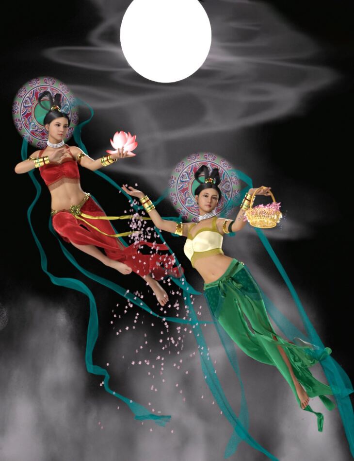 MK Flying Poses for Genesis 8 and 8.1 Females includes 20 full-body poses portraying soft, graceful movements.