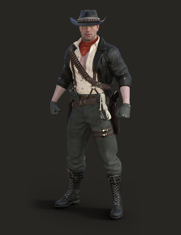 The revolvers and rifle are all rigged and included. I also included a shape preset for the character morph.