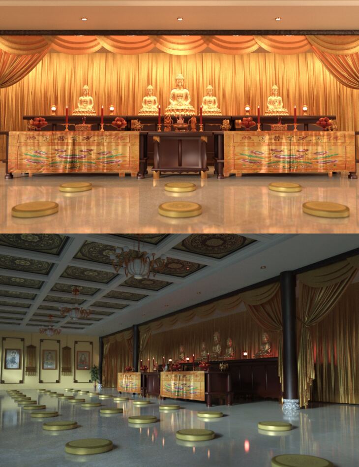 This is a Chinese-style Buddhist hall. Devout people pray in front of the Buddha statues, praying for good weather and peace for the country and the people.