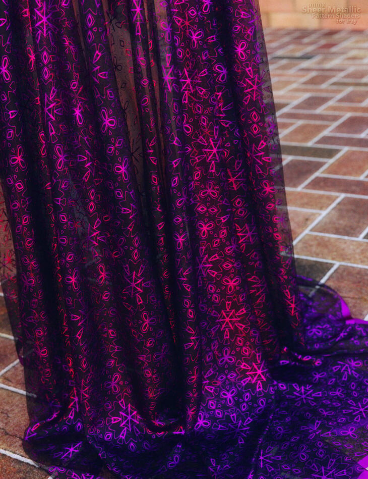 The sheer metallic pattern shaders for iray are designed to be an elegant set of cloth shaders.