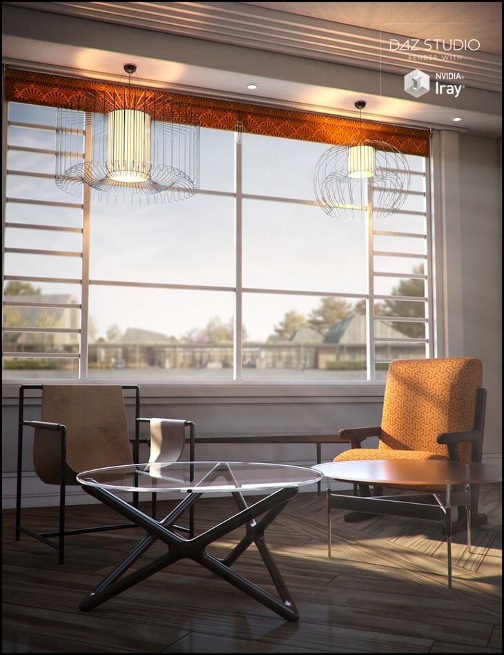 Features 2 chairs, 2 ceiling lights and 3 tables, which combined with shaders provide a versatile array of styles perfect for many scenes. Note that Deco Downtime is required if you wish to use the included promo scenes.