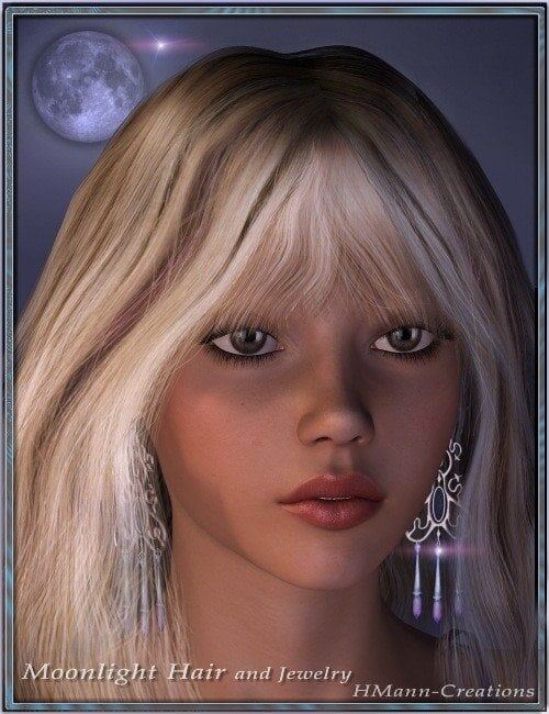 "Moonlight Hair Pack" is an incredible hair package by master builder HMann that contains 2 different hair models and 2 detailed sets of earrings.