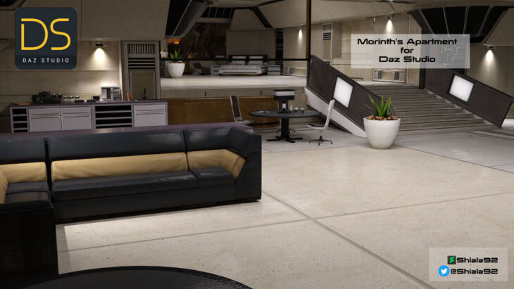 Morinth's Apartment from ME2. Comes with all lights set up properly but feel free to tweak them to your liking. You should also note that the windows are see-through so a HDRI is advised or at least some sort of dome.