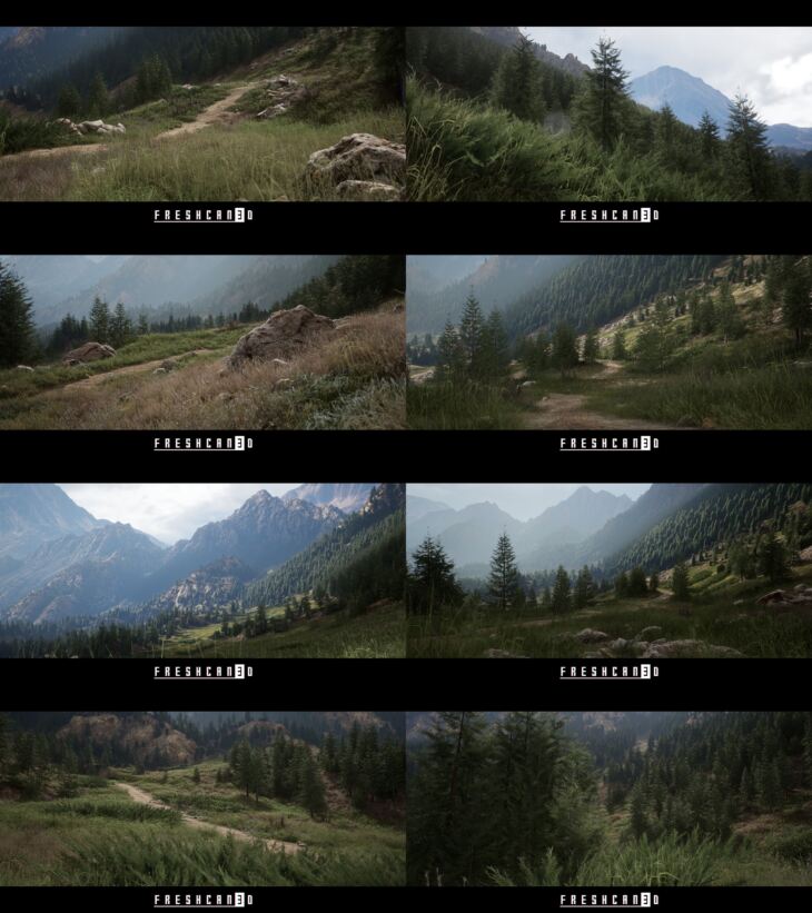 Mountain Grassland Package offers 2x2 kilometer demo map with high quality photoscan assets. You can make dry grassland or mountain forest environment using this pack. Package also uses the Unreal Engine's Procedural features making easier for users to generate their own environment.