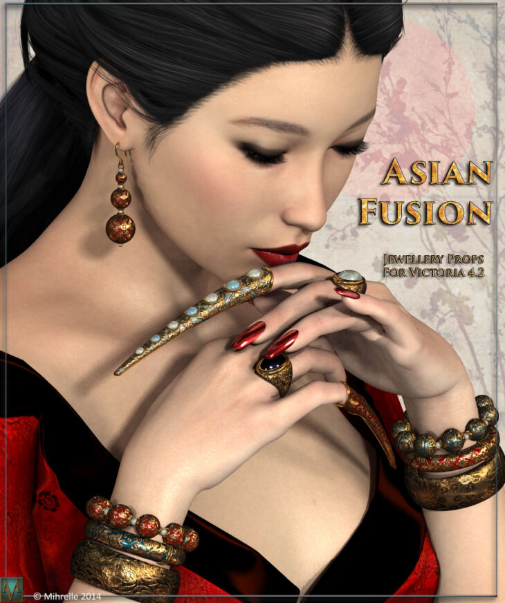 Asian Fusion - inspired by traditional Chinese and Japanese jewellery including nail guards as worn by court of the Qing Dynasty. Lavishly exotic, this pack includes earrings, nail guards, beaded bracelet, thin bangle, wide bracelet and ring. Of these, the beads, bangles and earrings all have designs of gold and silver filigree over enamel, mother of pearl and precious stones.