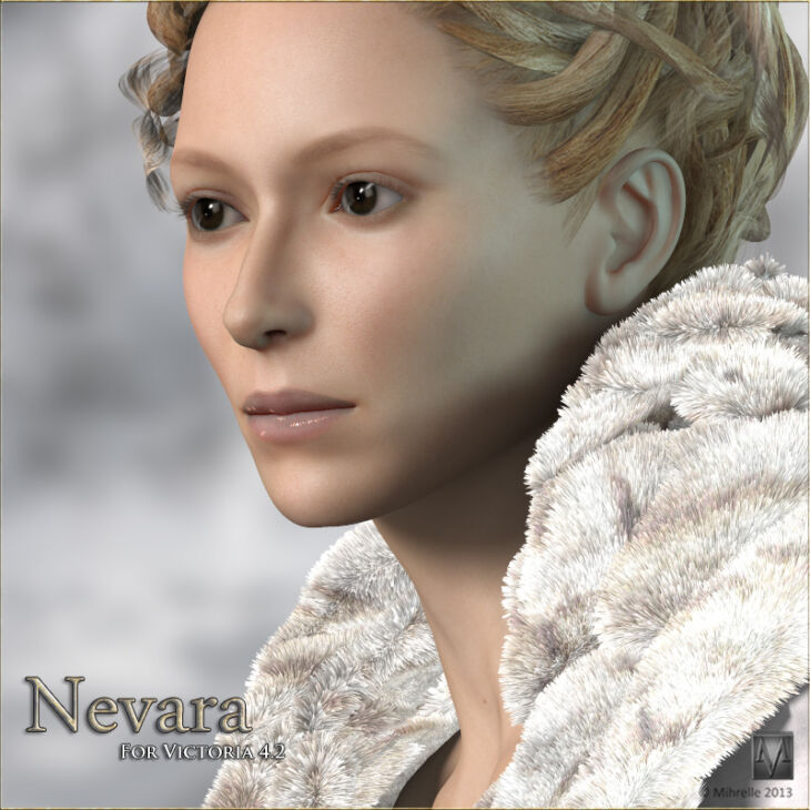 Nevara, her name means 'Snow'. All options come in a choice of 3 skin shaders, one with normal Poser MATS, one with SSS MATS for Poser 9 and Poser Pro 2012 and one with simple Daz MATS.