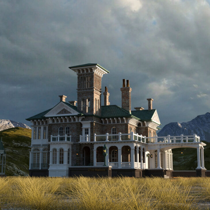 Imagine sitting on the porch sipping a Mint Julep on a warm day in front of this stately old Southern house. This prop includes some lovely structural details and lots of nooks and crannies bursting with render opportunities and could be set in any locale from Southern USA to the highlands of Scotland.
