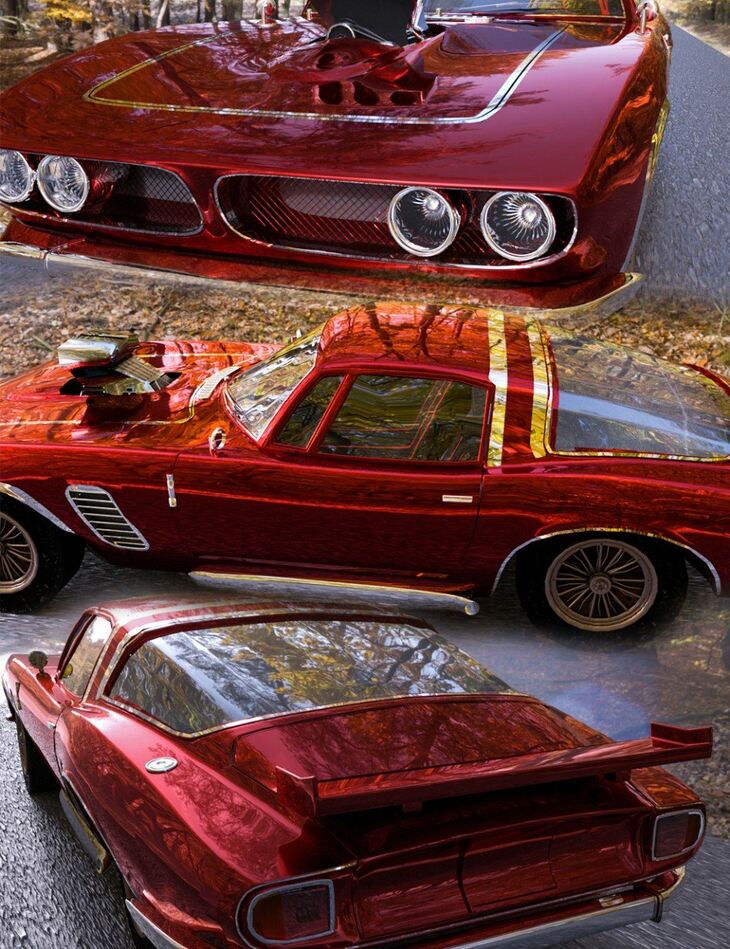 Based on classic American Muscle cars this car comes with 6 different Iray only paint jobs.