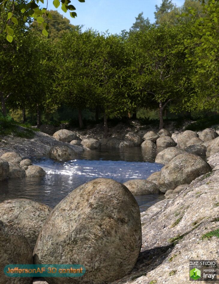 Your characters will be able to enjoy this beautiful environment with a creek in the middle of the forest.