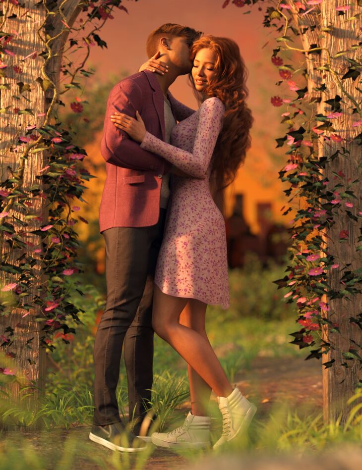 20 Full Body Interacting Couple Poses with 20 Expressions for Genesis 9 Masculine & Feminine.