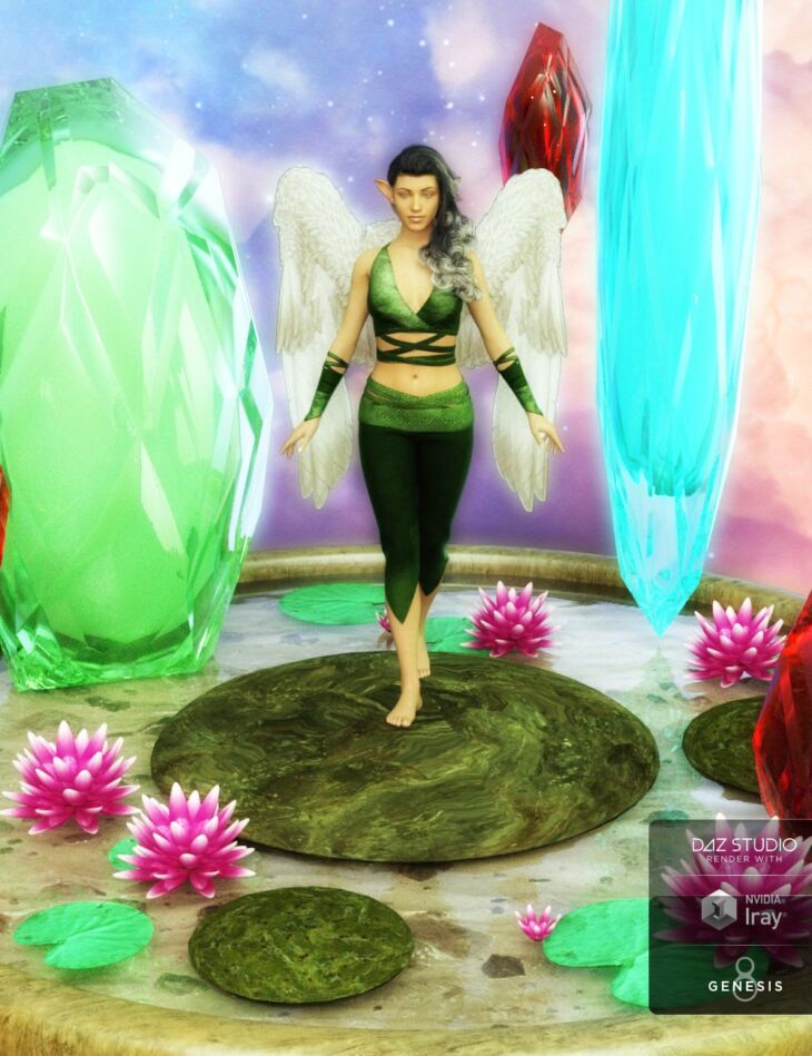 My Fantasy includes a set of fairy and fantastical poses that you can use in any scene you like, plus Crystal, Fantasy Lake, Flowers and Plants props in different materials.