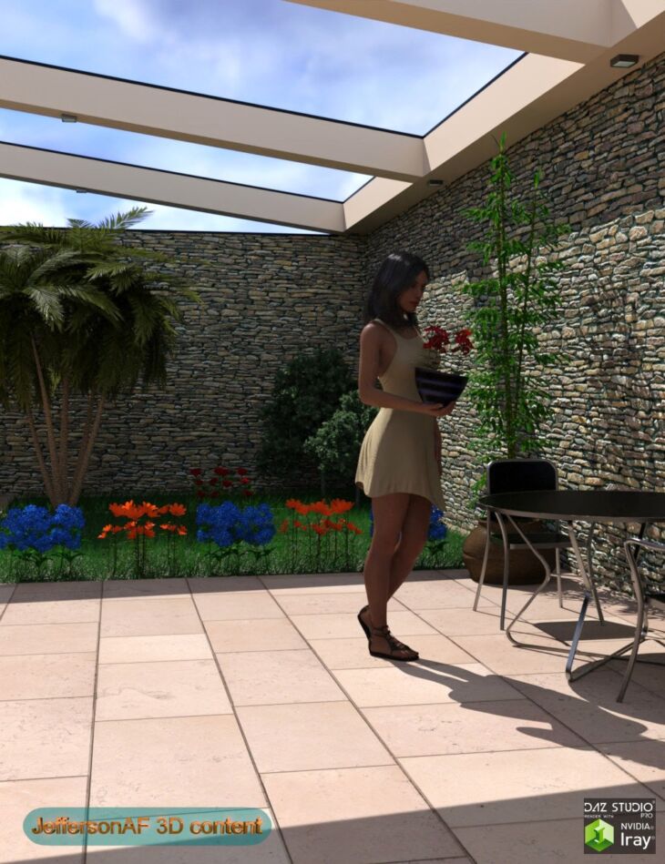 This indoor/outdoor environment includes an enclosed area with a glass roof that prevents rain from wetting your guests at a party, and so you can observe the garden at night with the stars in the sky.