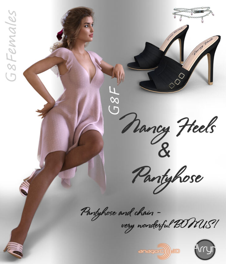 Nancy Heels and Pantyhose G8F is a new 3D models (figures) of High Heels, pantyhose and Chain for G8 Females. Another valuable addition to your collection.