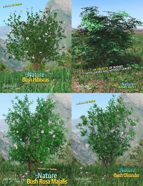 Nature - Bushes Pack 1 contains two types of bushes with leaves and without leaves in different variations.