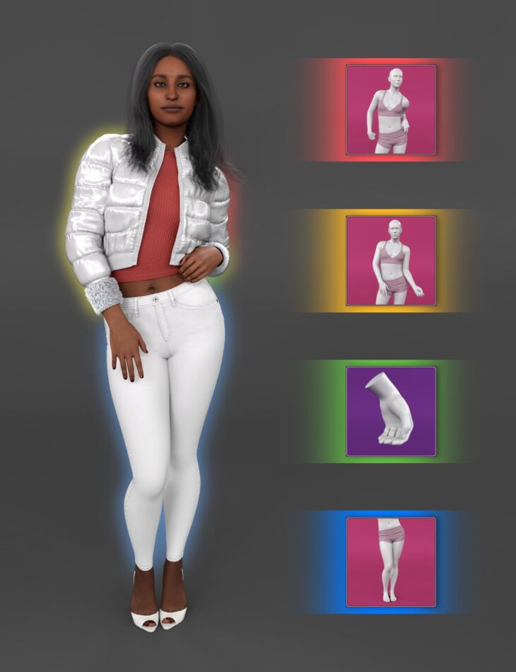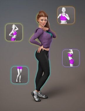 This set of partial poses is designed to emphasize standing poses with weight shifted to the side. All upper and lower body poses come in 2 styles with more or less weight shifted to the side.
