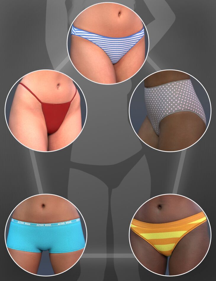 This collection of 5 different types of panties for Genesis 9 Female shapes provides ultimate realism and flexibility.