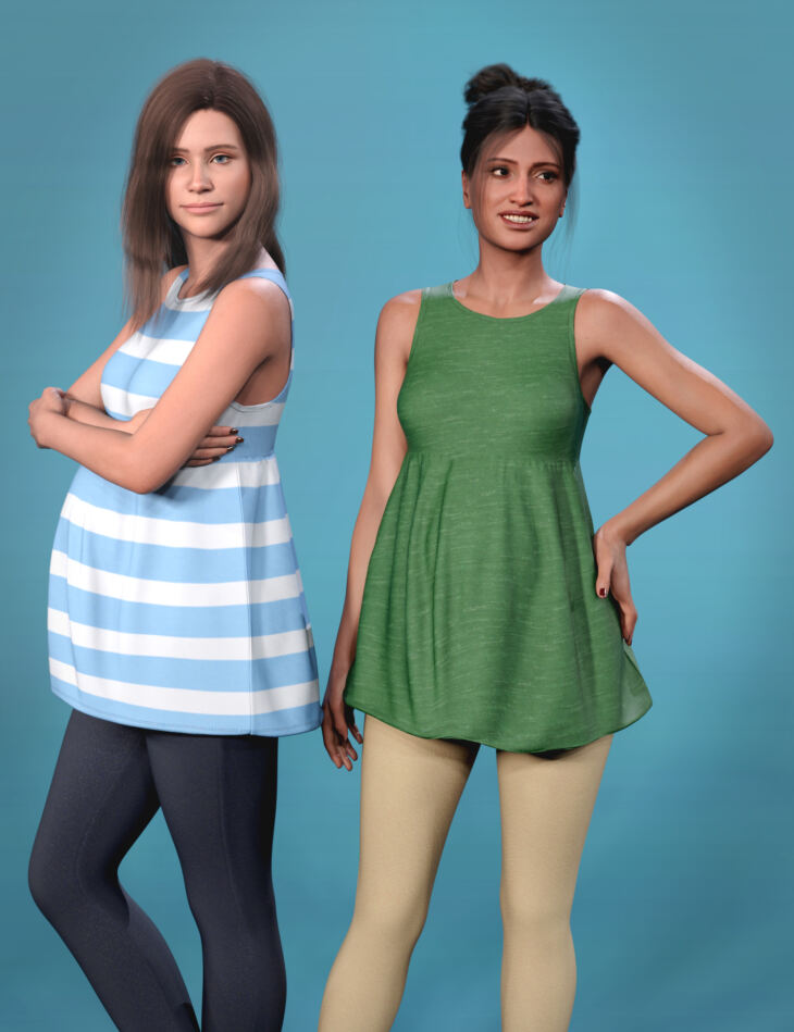 A trendy and practical set of maternity clothes for the new Olivia 9 as well as other female Genesis 9 characters.