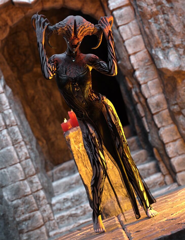 Nightmare Time Poses for Nightmare Queen includes 20 full poses for GP Nightmare Queen for Genesis 8 and 8.1 Females.