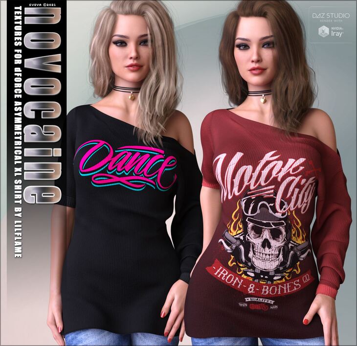 Novocaine Textures for dForce Asymmetrical XL Shirt G8F by Lilflame.